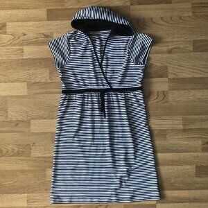LIZ CLAIRBORNE (Size M) Striped Black & White Hoodie Dress