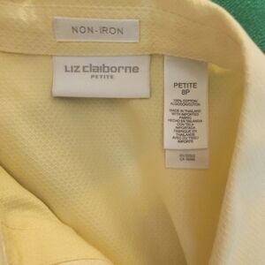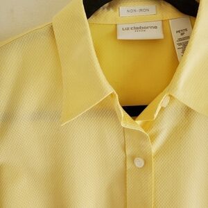 LIZ Claiborne Spring Yellow No Iron 100% Cotton Shirt Petite 8