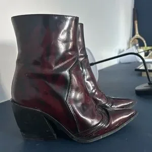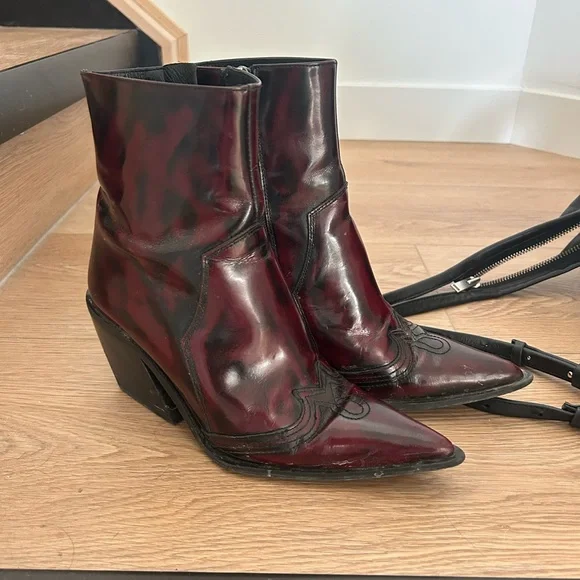 Stunning. Worn once for Stampede. Lintervalle made with Spanish leather. So comfortable. Red and black size 38
