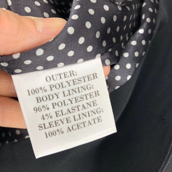 In very Good, pre-owned condition with no rips, holes, or stains. The arms have, however, been loosely sewn into a shorter hem - see photos zoomed on sleeves. Can only see one subtle thread form the outside, effect is to make the sleeves 3/4 sleeve instead of full length. I do believe this could be undone, if wanted.