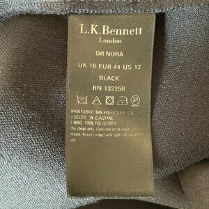 Selling a Classic L.K. Bennett London UK Black Dress-Full Front Zipper-Size 12. This is the brand worn by many UK royals and celebrities including Kate Middleton and Kate Winslett. This is a fully lined black dress in pristine condition. 64% Polyester, 33% Viscose, 3% Elastane. Look at pictures closely as this is a finely made dress with beautiful seams and fit. Has some stretch.