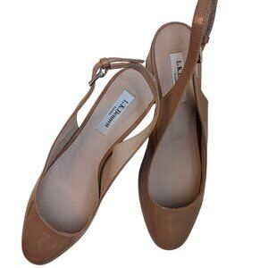 LK Bennett Nude Patent Leather Slingback Block Heel