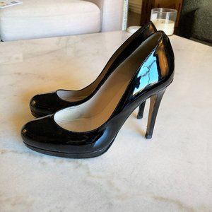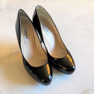 LK Bennett Sledge black patent platform pumps / shiny black high heel shoes