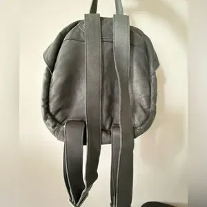 Grey L.K Berlin backpack. Fully functional zippers and buttons on the inside and outside.