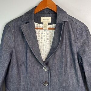 L.L. BEAN 3 Button Single Breasted Denim Blazer Blue Dark Wash Lined 6 Regular