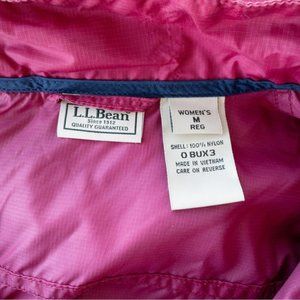 Excellent pre-owned condition L.L. Bean pink windbreaker. The hood can be rolled up to give you two options of wear.
