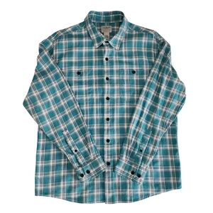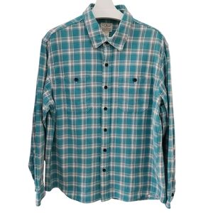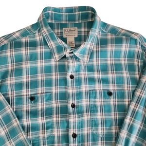llbean, flannel shirt, plaid, teal shirt, men’s medium, casual shirt, button down, outdoor wear