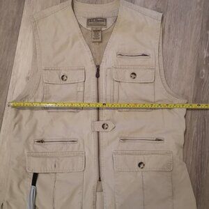 LL BEAN Vest Mens L Utility Safari Tactical Fishing Full Zip Canvas Cotton Tan