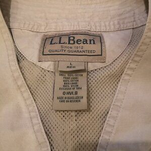 LL BEAN Vest Mens L Utility Safari Tactical Fishing Full Zip Canvas Cotton Tan.