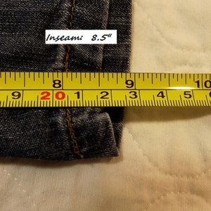 MEASUREMENTS: WAIST: 16" across, HIPS: 20" across THIGH: 12.5" across INSEAM: 8.5", OUTSEAM: 19" FRONT RISE: 11", BACK RISE: 15"