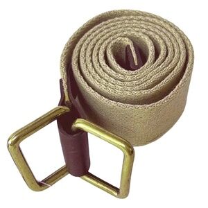 L.L. Bean Belt Square Ring Buckle Cotton Web & Leather Khaki Made in USA Vintage