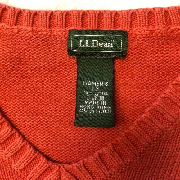 L.L. Bean Cotton Rust V Neck Pullover Sweater Size Large