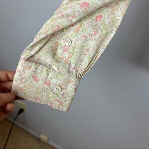 LL Bean Cream and Pink Floral Casual Button Down Shirt Size Large