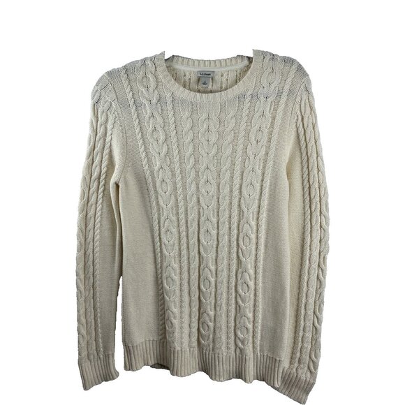 L.L. Bean Cream-Coloured Cable Knit Sweater Womens Size S
