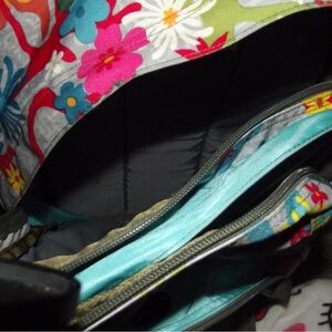 Vibrant floral design. Multiple compartments. Perfect for everyday use.
