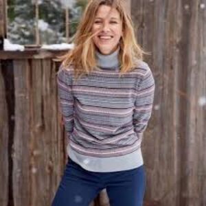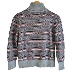 LL Bean Grey and Pink Fair Isle Cotton Cashmere Blend Turtle Neck Sweater