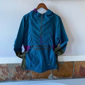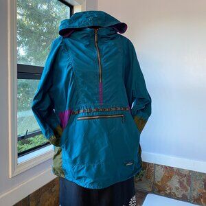 Vintage 90's LL Bean Anorak 1/2 Zip Aztec Windbreaker Jacket Large. This pre-owned jacket is perfect for travel, activewear, and casual occasions. Made of 100% Nylon, this colorblock pattern windbreaker features a long sleeve with pullover closure and a hood with a 1/2 zip. The jacket is machine washable and has zipped pockets, reflective back accent, embroidered Aztec stripe, and a knit fabric type. It is a regular fit and has a chest size of 42 inches.