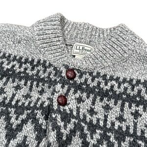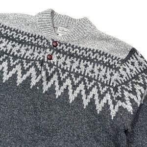 LL Bean Lambswool Wool Fair Isle Knit Gray Thick Henley Sweater Mens XL Reg