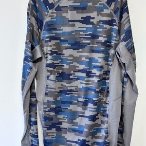 LL Bean Long Sleeve Men's XL Tall Henley Shirt Digital Camouflage Blue Gray