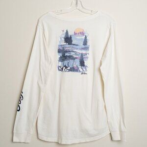 LL Bean Long Sleeve Pocket Tee Washed Organic Cotton Graphic Retro Nature