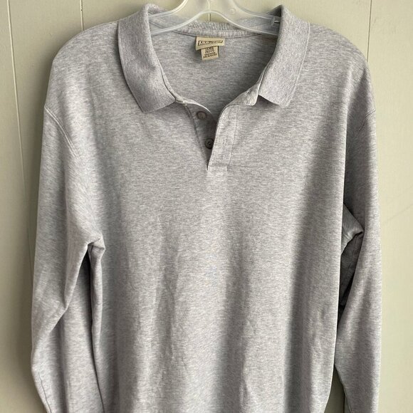 LL Bean Long Sleeve Polo Shirt Pima Cotton Men's Large Gray 262175