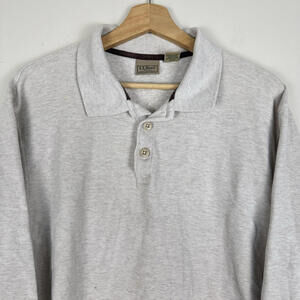 L.L Bean Long Sleeve Rugby Shirt Men Sz L-Tall Waffle Thermal Classic Fit Beige
