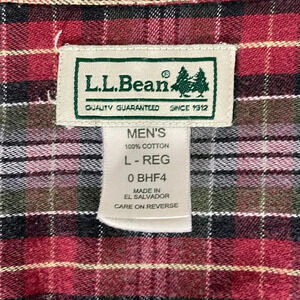 L.L. Bean Men’s Button Down Shirt Flannel Plaid Large Regular Cotton Red Green