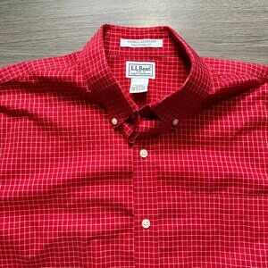 L.L. Bean Men's Wrinkle-Free Kennebunk Sport Short Sleeve Shirt - Red