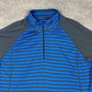 LL Bean Merino Wool Base Layer 1/4 Zip Pullover Sweater Men's XL Blue Striped