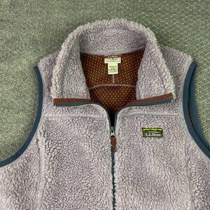 LL Bean Mountain Pile Fleece Vest Women's Large Lilac Full Zip Deep Pile 502430