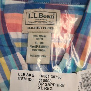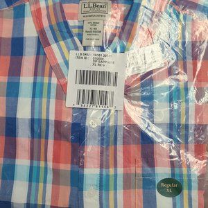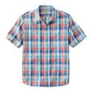 LL Bean Organic Cotton Seersucker Shirt, Short-Sleeve, Plaid NWT