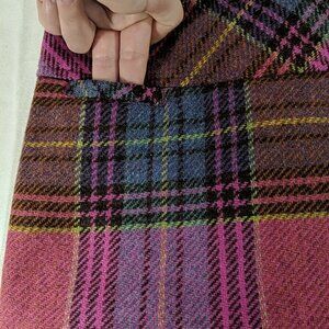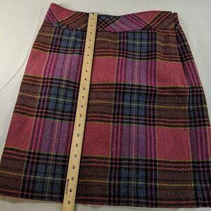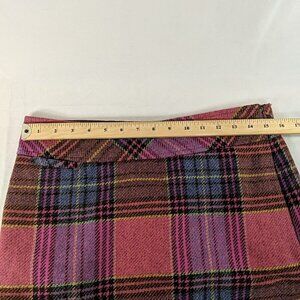 L.L. Bean Pink Plaid Wool Skirt Women's 8 Short Knee Length Slit Tartan Pencil