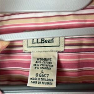 L.L. Bean Pink and Cream Striped Long Sleeve Oversized Shirt Size Large