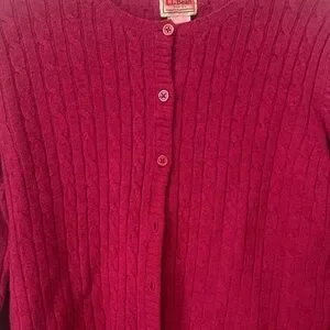 L.L. Bean Raspberry Cable-Knit Wool Cardigan