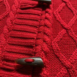 L.L. Bean Red Wool Blend Cable Knit Toggle Cardigan Sweater Women’s Small
