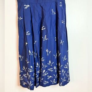 L.L. Bean Signature Blue Sleeveless Fit & Flare Midi Dress w/ Bird Print Size 0