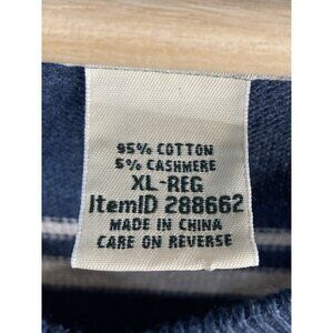 LL Bean V-Neck Striped Sweater Mens SZ XL Reg Cashmere Blend Long Sleeve 288662