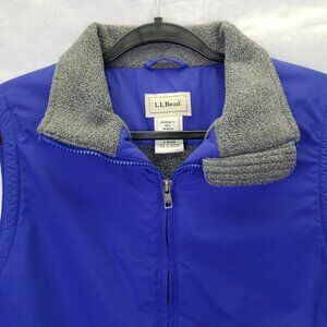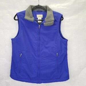 LL Bean Vest Women's M Blue Nylon Full Zip Fleece Lined Zippered Pockets Outdoor