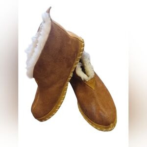 L.L. Bean "Wicked Good Slipper" EUC Leather Shearling, Dark Tan Size 6M