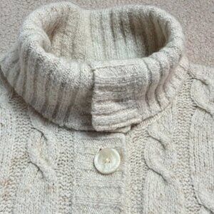 L.L. Bean Women’s Cream Cowl Neck Cable Knit Sweater Cardigan Size Large
