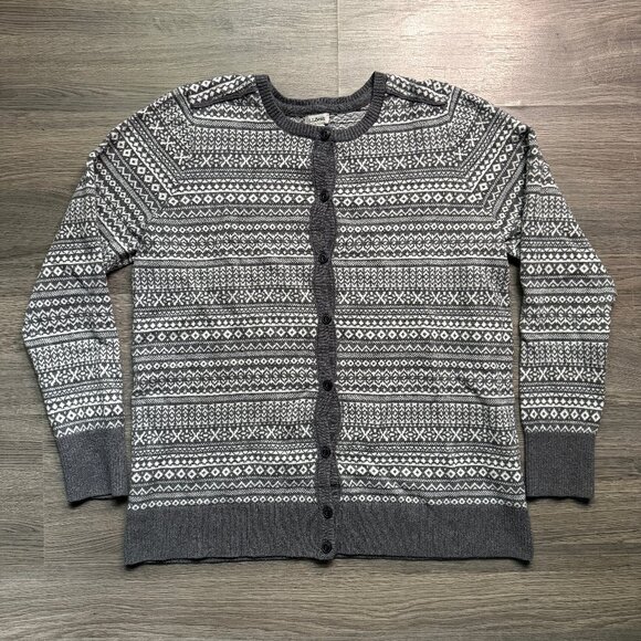 L.L. Bean Women's Knit Cashmere Cardigan - Grey/White