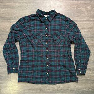 L.L. Bean Women's Lightweight Plaid Flannel Shirt - Teal/Pink