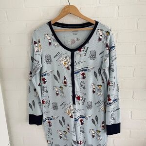 L.L. Bean Women’s Ski Underwear Pajama One piece Novelty print Waffle Blue M