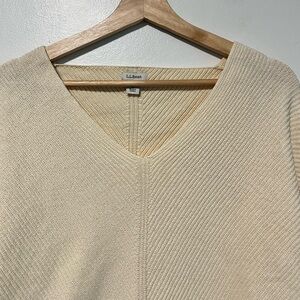 This L.L. Bean V-neck sweater brings timeless ease and quiet luxury to your closet. In a soft, creamy beige tone, the cotton knit features a textured diagonal rib pattern that adds depth without bulk. With its relaxed silhouette, drop shoulders, and 3/4-length sleeves, this pullover is perfect for layering across seasons. Crafted from breathable cotton and made with quality you can count on, it’s a wardrobe staple that never goes out of style.