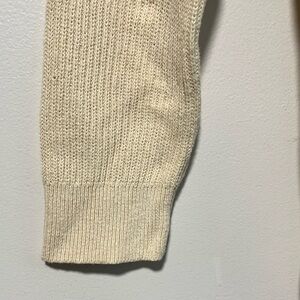L.L. Bean Women’s V-Neck Cotton Sweater – Cream Textured Knit Pullover, Size L