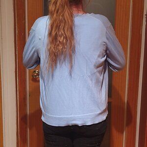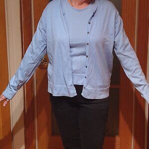 LL bean light blue tiny ribbed twinset sweater size Large 8 button 100% cotton