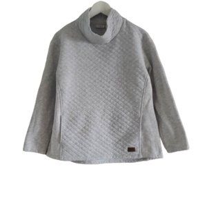L.L. Bean very light gray quilted funnel neck sweatshirt in size Medium Petite. Front pocket, very gently worn