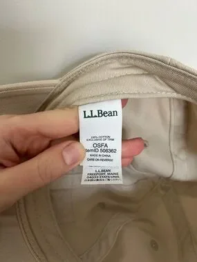 Like new L.L. Bean patch logo hat. Beige colour. 100% cotton. Very very mild discolouration on the inner strap at the back (shown in last photo). Otherwise in perfect condition. Only worn a handful of times.