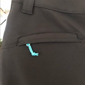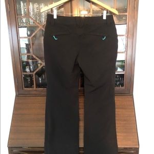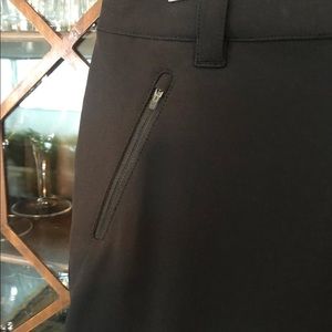 High quality pant in new condition. Zippered pockets on sides and one zippered picket on leg. Zippered pockets on bum with turquoise tag. Material is luxurious feeling - the kind that doesn’t wrinkle easily or pill. Could wear these pants casual or dressy.