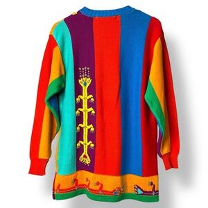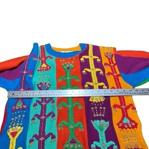 LL EUROPEAN 100% Cotton Embroidered & Beaded Rainbow Knit Pulloveer Sweater Sz M